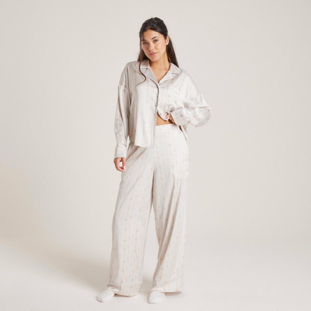 These pyjama trousers combine hand-drawn prints with soft satin fabrics to create a beautifully feminine sleepwear piece. The elasticated waist pairs perfectly with the wide cuffs and relaxed fit for a comfortable yet always-flattering silhouette.