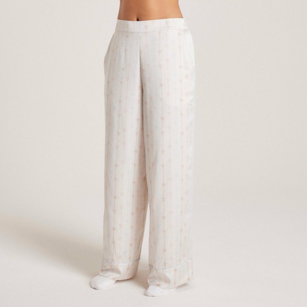 The Lounge Satin Sleep Collection embodies the perfect balance of comfort and elegance. With its hand-designed bow print, spacious pockets, and signature logo embroidery, the Bow Satin Pyjama Trousers are no exception.
