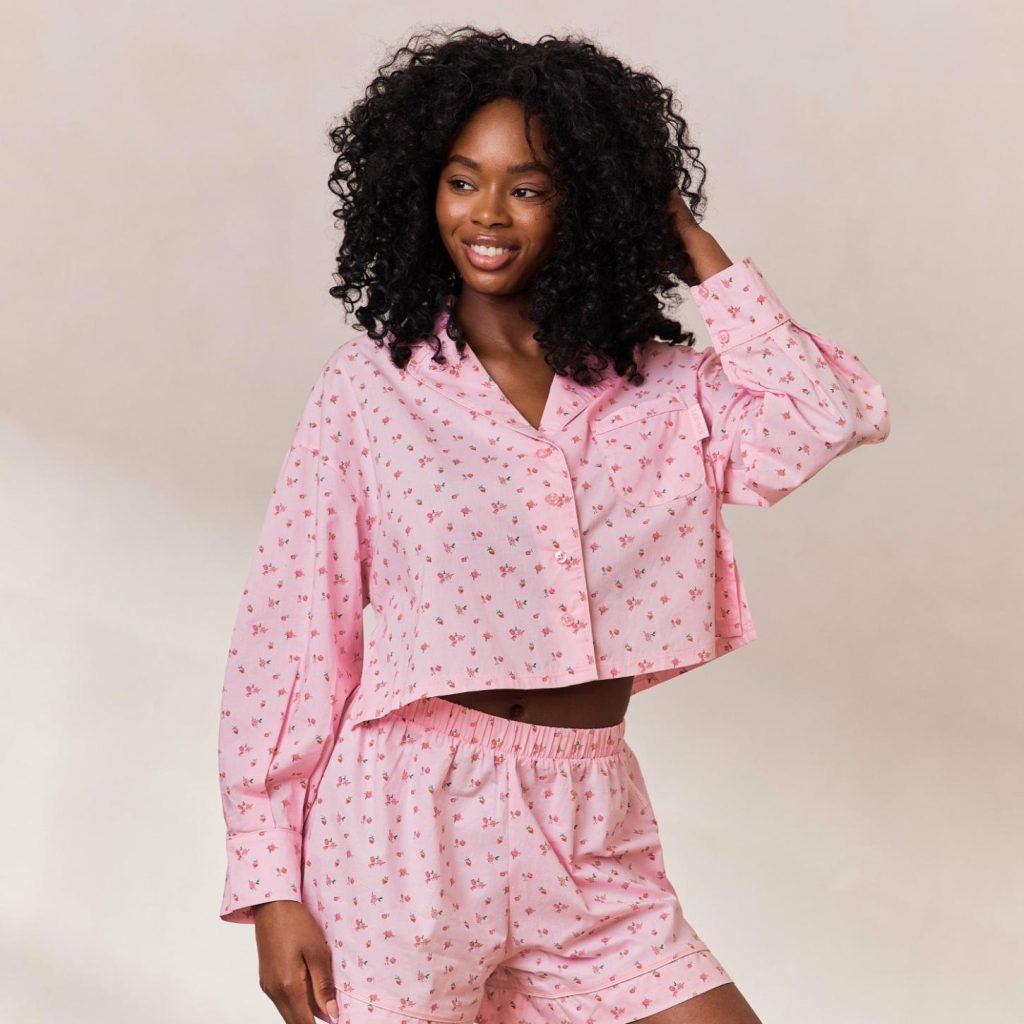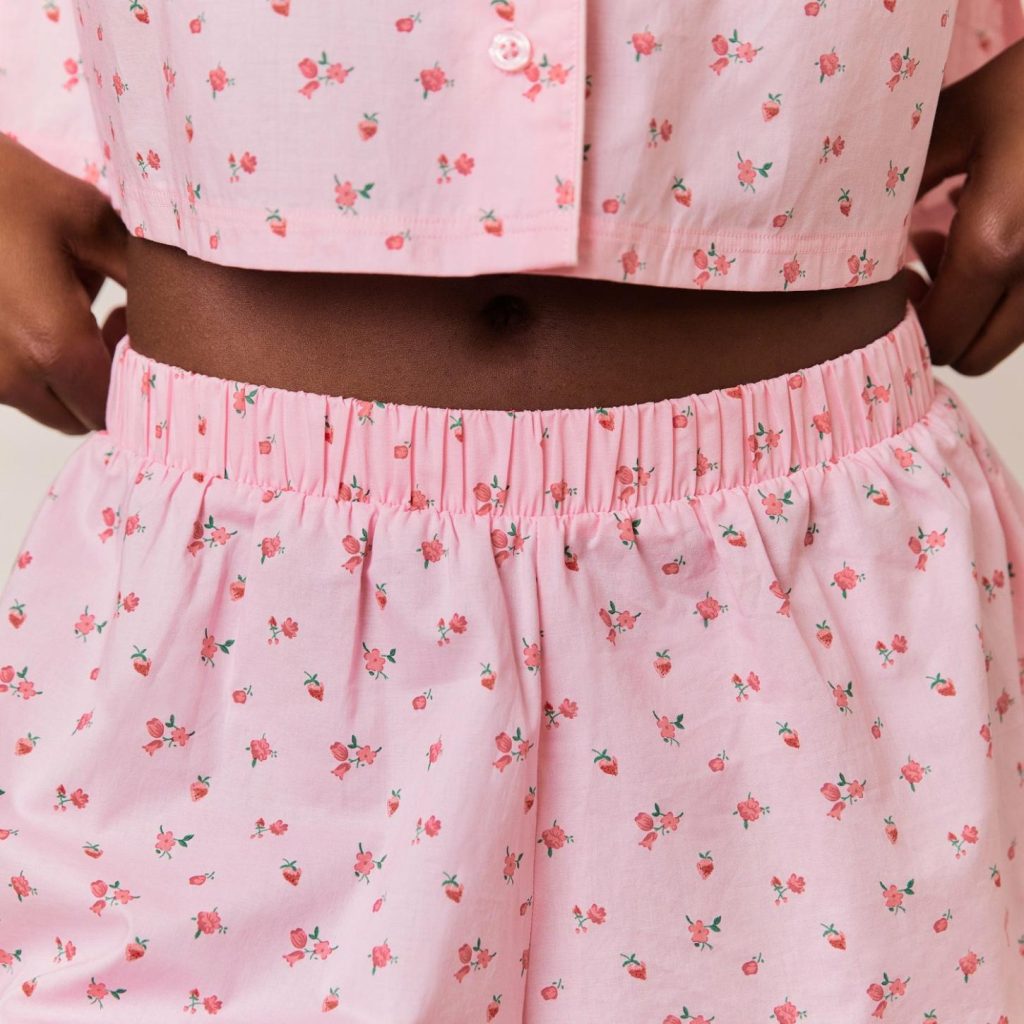 Lightweight cotton fabric paired with a hand-drawn floral and fruit print