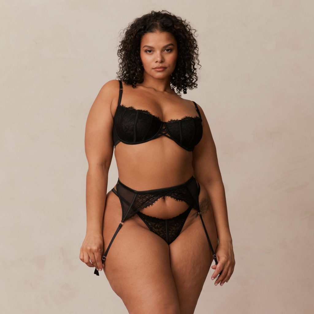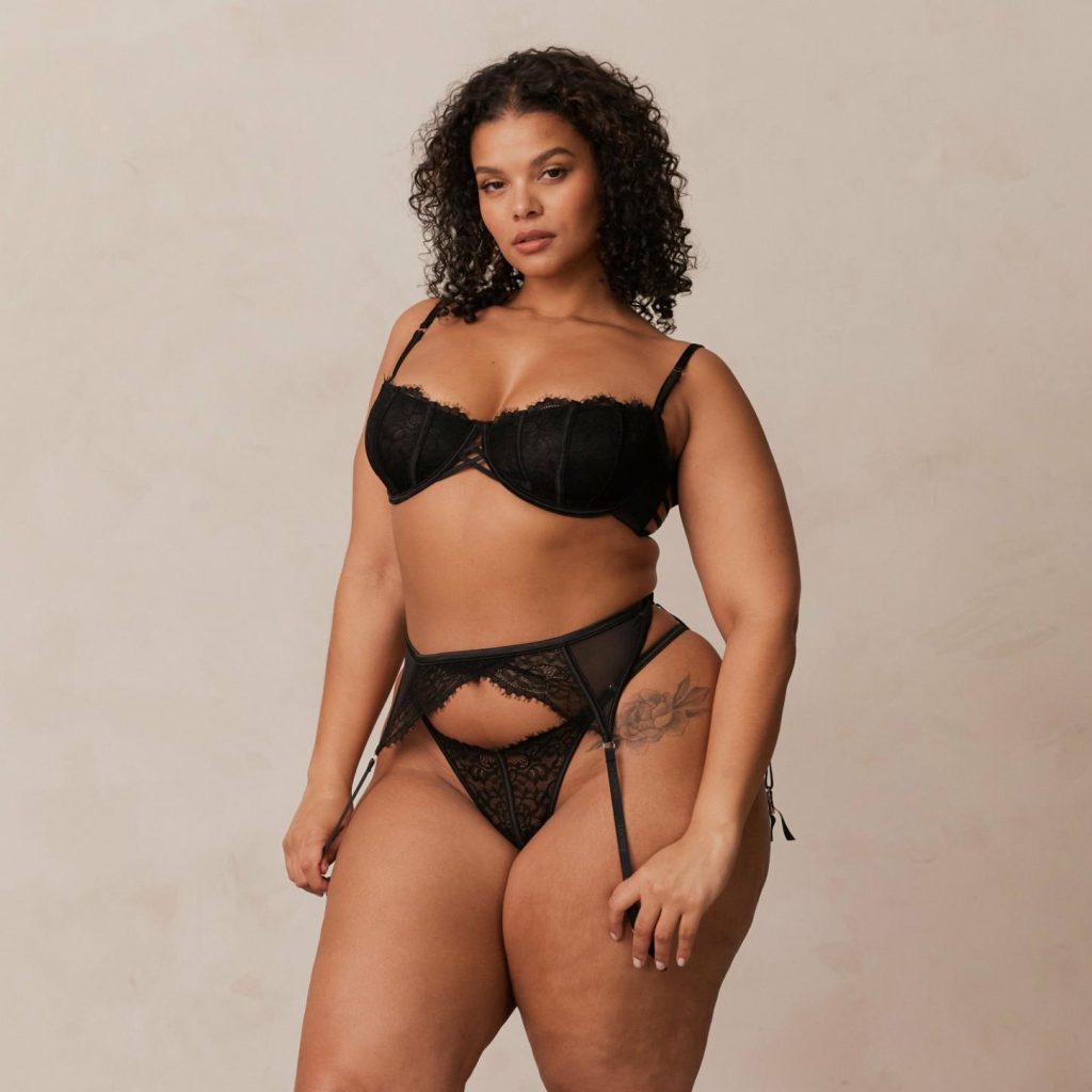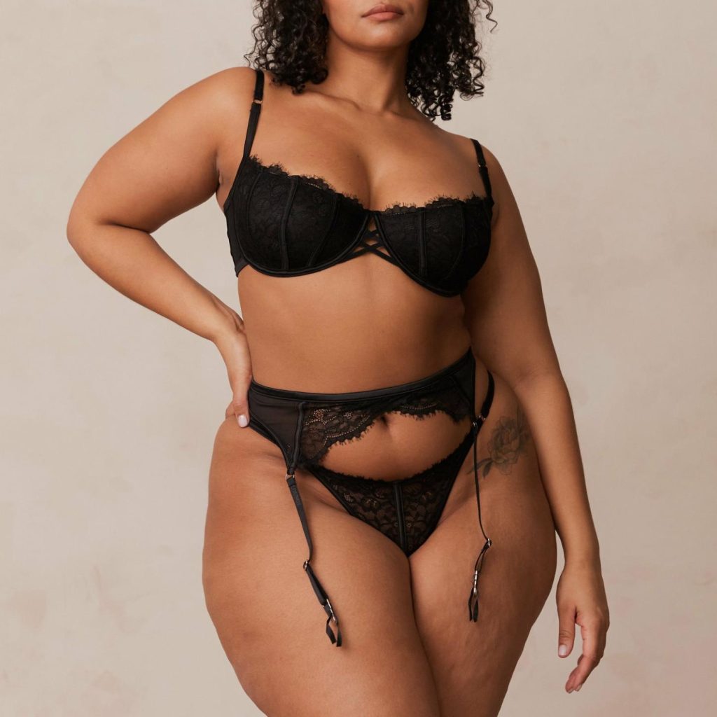 Our Kylie Intimates Set features beautiful criss-cross detailing that’s striking and truly sexy. This three piece intricate lace set is designed to entice with its bold strapping details and cut out features.