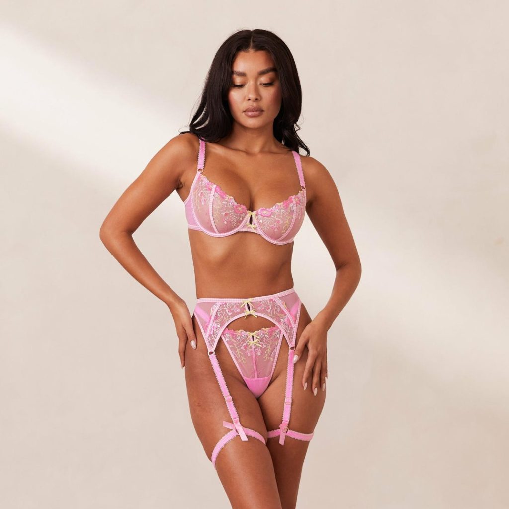 Take a peek at the intricate details of the Nelly Intimates Set. This beautifully detailed set makes use of yellow detailing for a subtle pop of colour in this flawless fit.