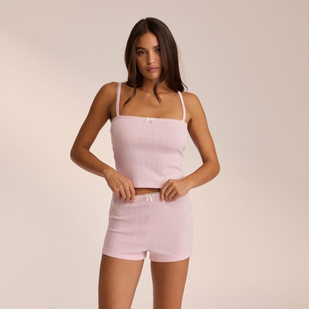Pointelle Strappy Pyjama Top Pink | Women Lounge Tops