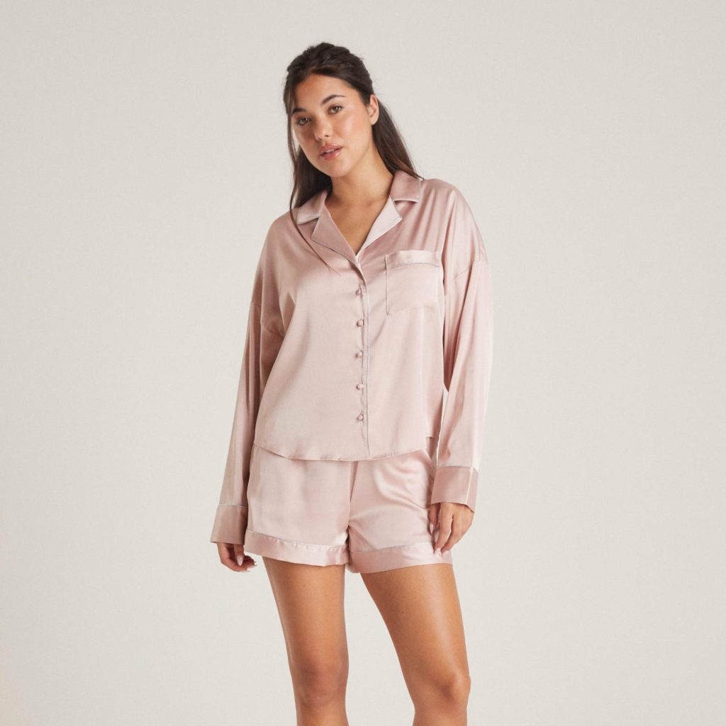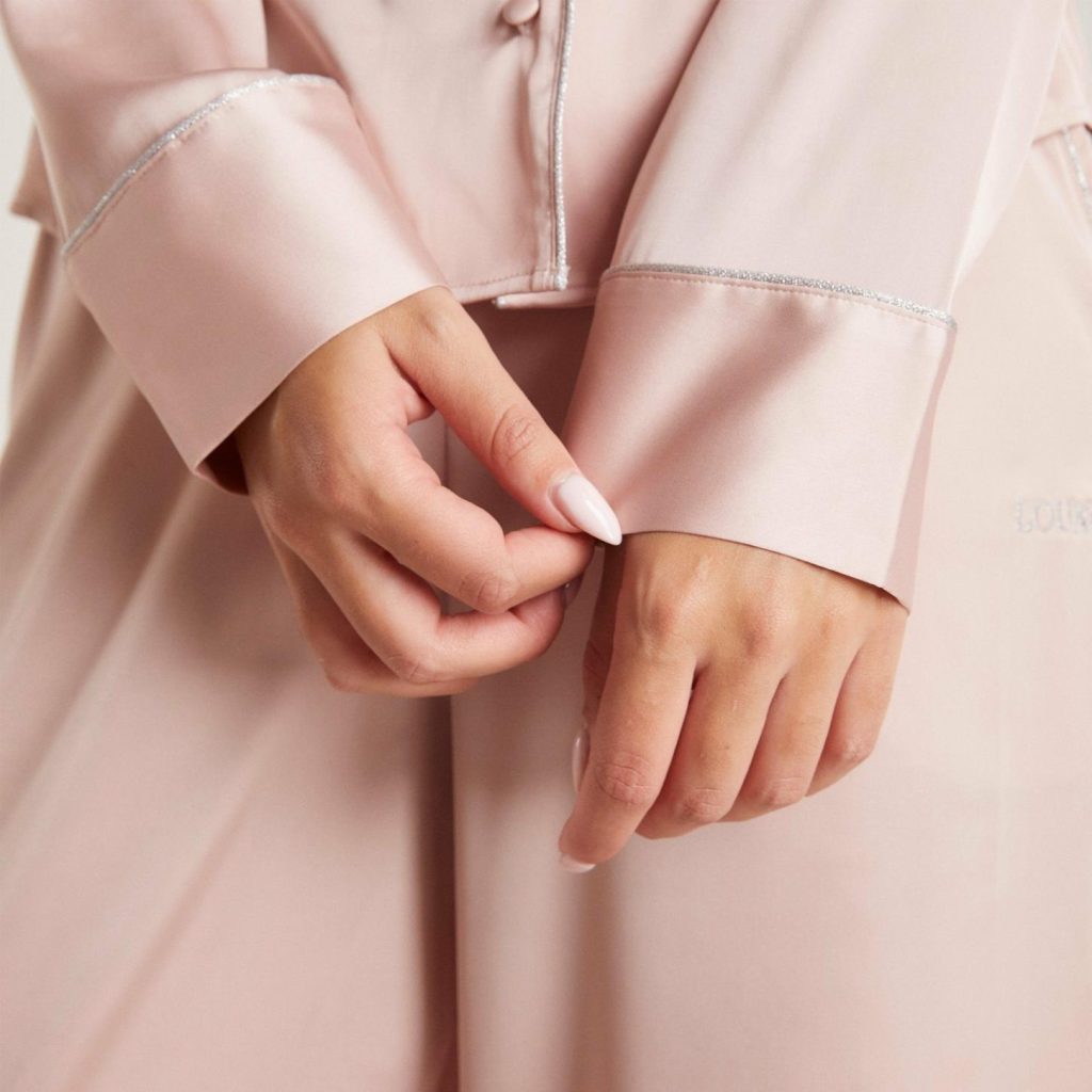 The Lounge Satin Sleep Collection embodies the perfect balance of comfort and elegance. With its subtle sparkle piping and signature logo embroidery, the Sparkle Satin Pyjama Shirt is no exception.